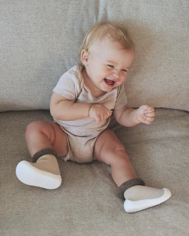 Ont observé une amélioration de l'équilibre et de la marche de leur enfant grâce aux chaussures-socquettes Tiny Steps.